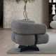 Acest fotoliu se remarcă prin forma sa și designul modern, care îmbină armonios confortul cu estetica rafinată. Tapițeria tip bouclé îi oferă o textură plăcută la atingere creează o zonă de relaxare primitoare.  Un avantaj important este posibilitatea de a-ți personaliza nuanța tapițeriei, alegând dintr-o gamă variată de culori, pentru a integra perfect fotoliul în orice stil de amenajare interioare..